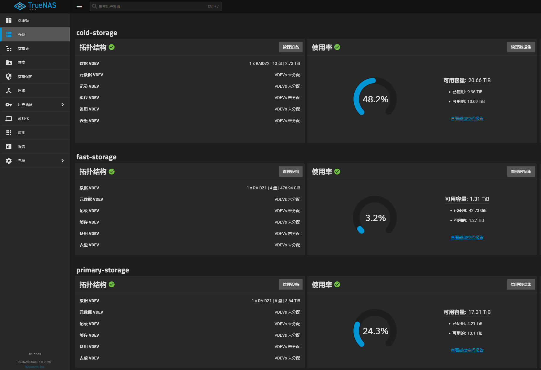 之所以选择飞牛系统,主要是因为它现在越来越完善,省心。一来,它自带的ZFS功能满足了我对数据安全的基本要求。二来,它的相册和影视应用直接解决了我的两大痛点:之前用的Immich在iOS上太卡,飞牛相册备份体验很流畅;飞牛影视则让我能轻松管理并播放自己的电影库。说白了,就是一套系统把我想要的功能都整齐活了。