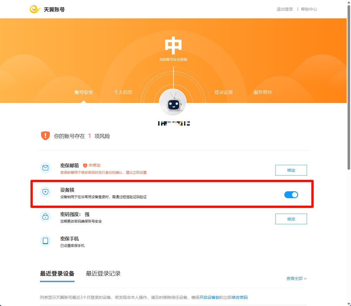 登录天翼账号:https://e.dlife.cn/portal/web/index.html#/login